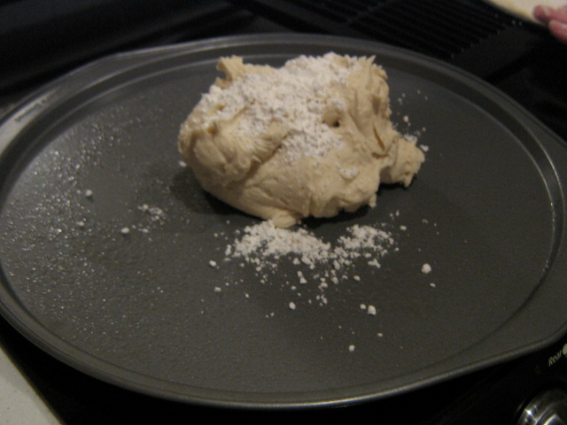 While the two crusts are resting, I make my own pizza sauce. I can't actually give you the recipe because it is in my head and it is one of those recipes that I don't measure anything. I do use a can of tomato paste, olive oil, water and mix it until I have the right consistency. Then I add Italian seasonings, basil, salt, sugar, minced garlic, and minced onion to taste.